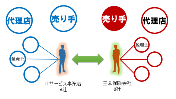 ITサービス提供会社 A社 保険会社 B社の間で代理店紹介のマッチング